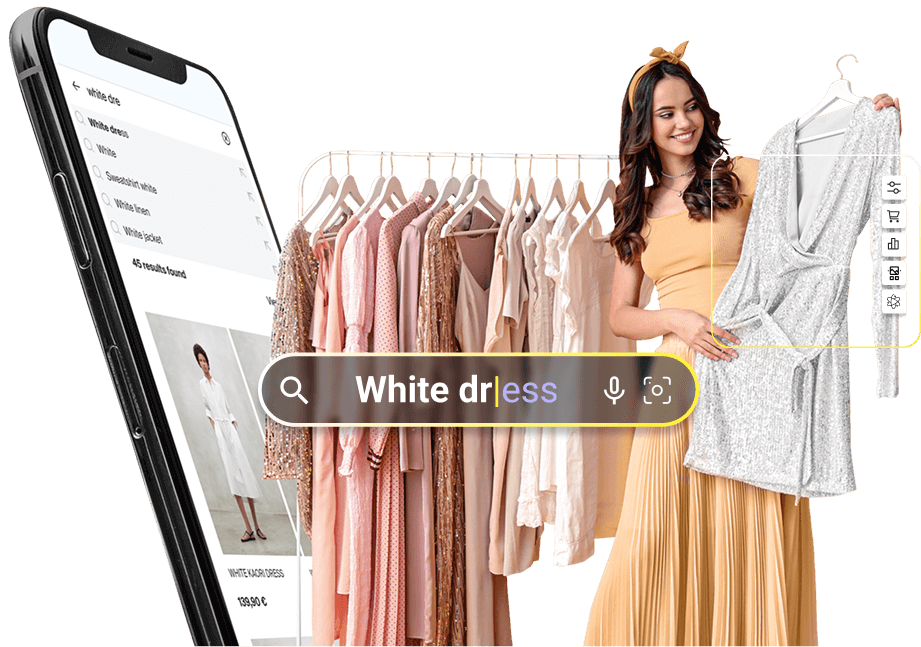 Your customer finds the perfect dress, and Doofinder's Recommendations instantly suggest matching items, boosting cross-sells and order value.