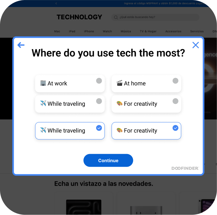 Many tech products require accessories—like lenses, memory cards, or a camera bag for a camera. Doofinder's Recommendations instantly suggest these essentials, enhancing the user experience and unlocking immediate cross-selling opportunities.