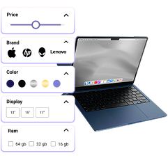 Doofinder's advanced filters allow precise searches by specs like processor, OS, and storage. Fully customizable, it's perfect for users who want control and no distractions.